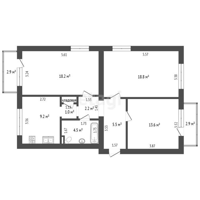 · Простор и свет: Три изолированные комнаты, высокие потолки 3 метра и окна на три стороны света наполняют пространство воздухом и солнечным светом круглый год.