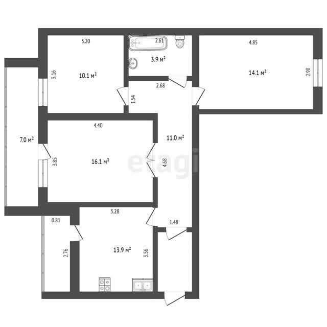 - Общая площадь69.1 м²