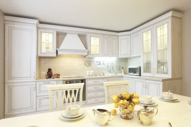 Кухня оснащена современной встроенной техникой, включая посудомоечную машину.