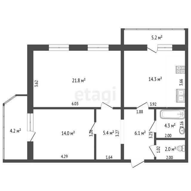 - Площадь кухни14.3 м²
