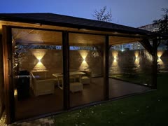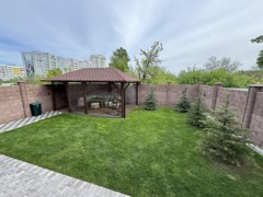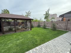- Ухоженный двор с освещением, поливом и ландшафтным дизайном (елки, газон)